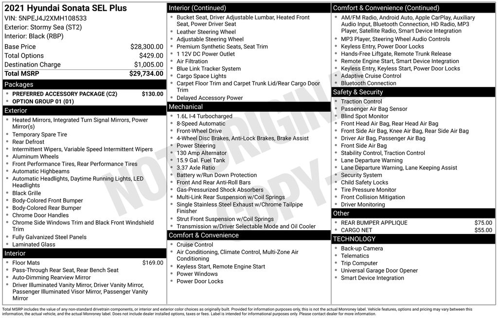 This 2021 Hyundai Sonata SEL Plus is a remarkable vehicle that combines exceptional performance, advanced technology, and uncompromising style. With its sleek and sophisticated exterior, this Sonata commands attention wherever it goes. Under the hood, the efficient I4 engine and 8-speed automatic transmission deliver an impressive 27 city/37 highway MPG, making it an exceptional choice for the daily commute or weekend getaways.