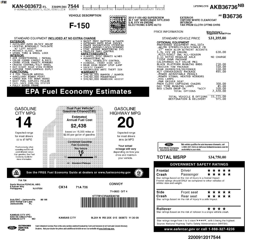 Discover the perfect blend of power, capability, and comfort in this 2010 Ford F-150 XLT. With its rugged 5.4L V8 engine, 6-speed automatic transmission, and rear-wheel drive, this truck is ready to tackle any task with ease. Boasting an impressive 14 city/20 highway MPG, it delivers the performance you need without sacrificing fuel efficiency.