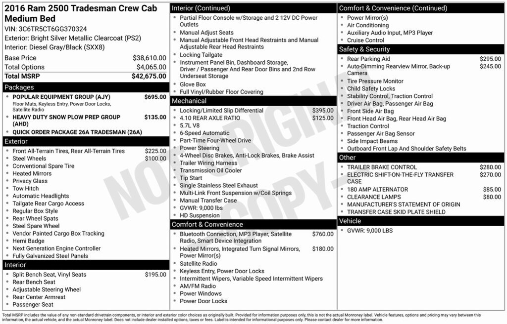 2016 Ram 2500 Tradesman Tradesman 4D Crew Cab 4WD 6-Speed Automatic HEMI 5.7L V8 VVT
