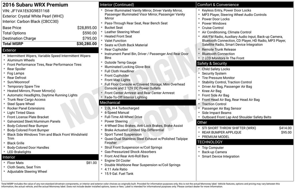 2016 Subaru WRX Premium!