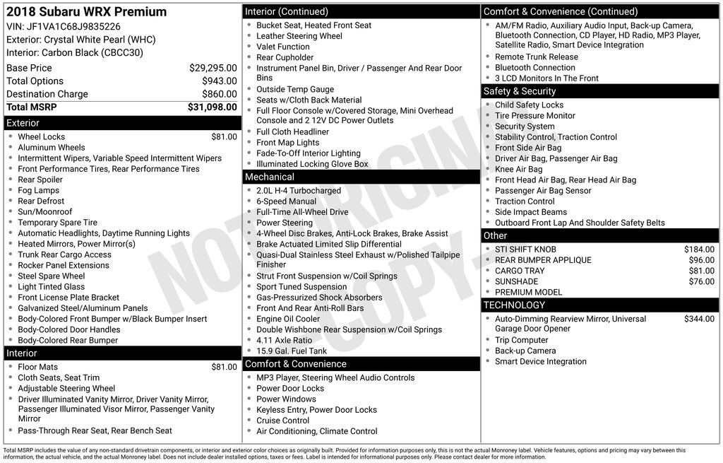 Don't miss your chance to own this exceptional Subaru WRX. With its unbeatable combination of performance, features, and value, it's sure to impress. Schedule a test drive today and discover why this WRX is the perfect choice for the discerning driver.