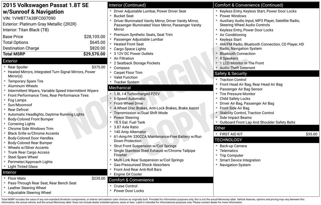 2015 Volkswagen Passat 1.8T SE 1.8T SE 4D Sedan FWD 6-Speed Automatic with Tiptronic 1.8L 4-Cylinder DOHC